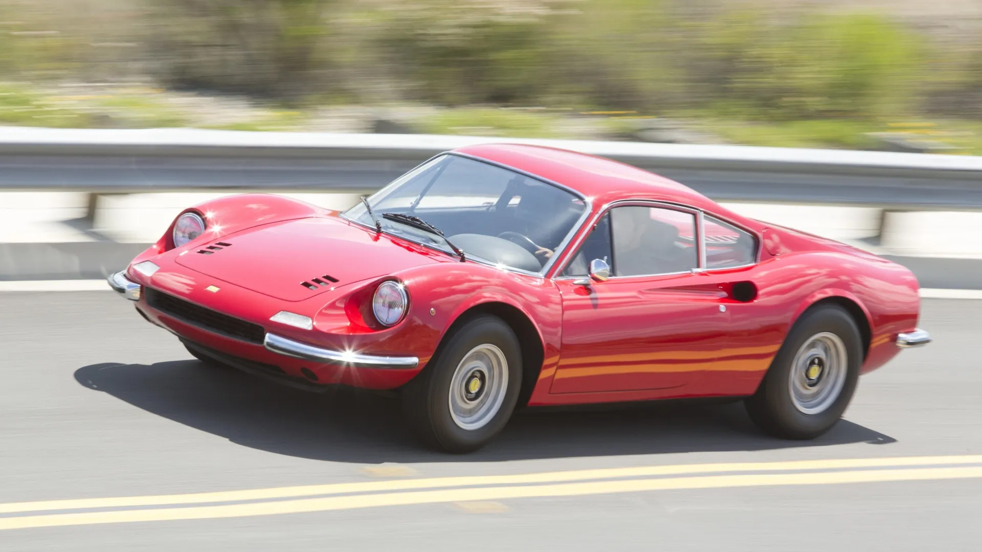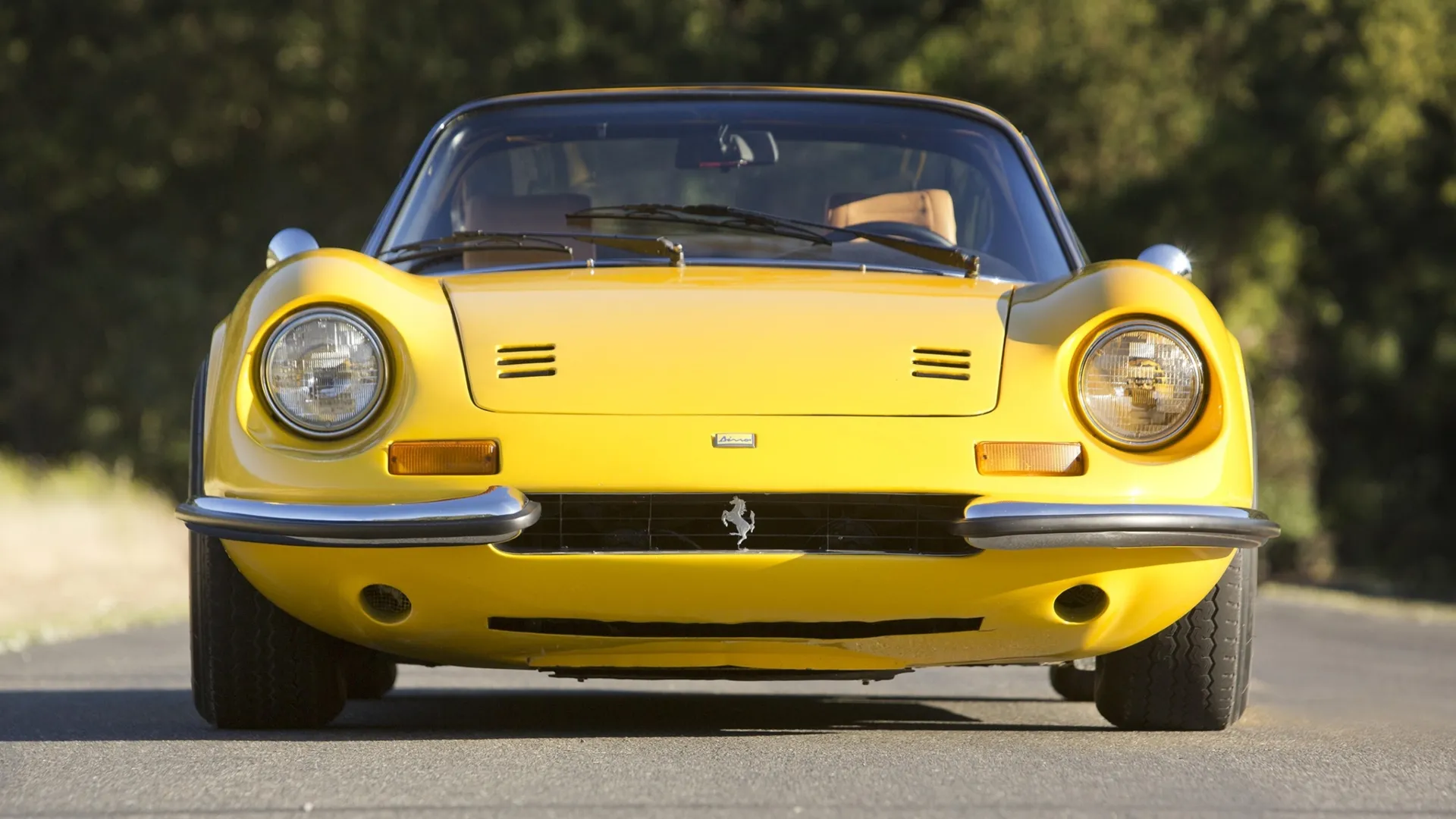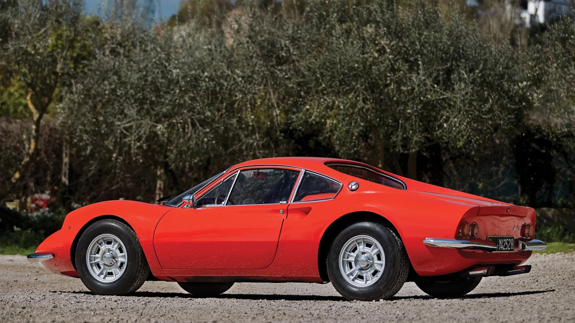 “Minuscola, scattante, sicura… quasi una Ferrari”. Così, quasi a voler farsi scudo contro eventuali snobismi da parte dei proprietari dei modelli più grandi, potenti e costosi, recitava il depliant informativo con cui, nel 1967, la casa di Maranello presentava la Dino 206 GT. Disegnata dalla Pininfarina e costruita dalla carrozzeria Scaglietti di Modena, sul cofano non sfoggiava il tradizionale cavallino rampante, ma una targhetta gialla con il soprannome di Alfredo Ferrari, l’amatissimo figlio di Enzo che aveva contribuito al progetto del motore V6 che, undici anni dopo la sua prematura scomparsa, avrebbe mosso questa sinuosa e bassissima coupé biposto tutta d’alluminio. Al salone di Ginevra del 1969, appena sei mesi dopo l’inizio delle vendite della 206 GT, debuttò la Dino 246 GT, proposta anche in una versione con tettuccio rigidido asportabile, la GTS. La cilindrata del sei cilindri cresceva da 2.0 a 2.4 e la potenza da 180 a 195 CV, per una velocità massima dichiarata di 245 km/h. La versione con il motore più grande e potente è famosa anche per i rocamboleschi inseguimenti di cui è protagonista nella serie TV inglese Attenti a quei due e nel 1972, con l’equipaggio francese Laffeach-Doncieux, è giunta diciassettesima nella classifica assoluta della 24 Ore di Le Mans. Con il passare del tempo, le Dino 206 e 246 si sono conquistate un apprezzamento sempre maggiore da parte degli intenditori e, come testimonia l’ascesa delle quotazioni, oggi sono percepite come delle vere Ferrari.