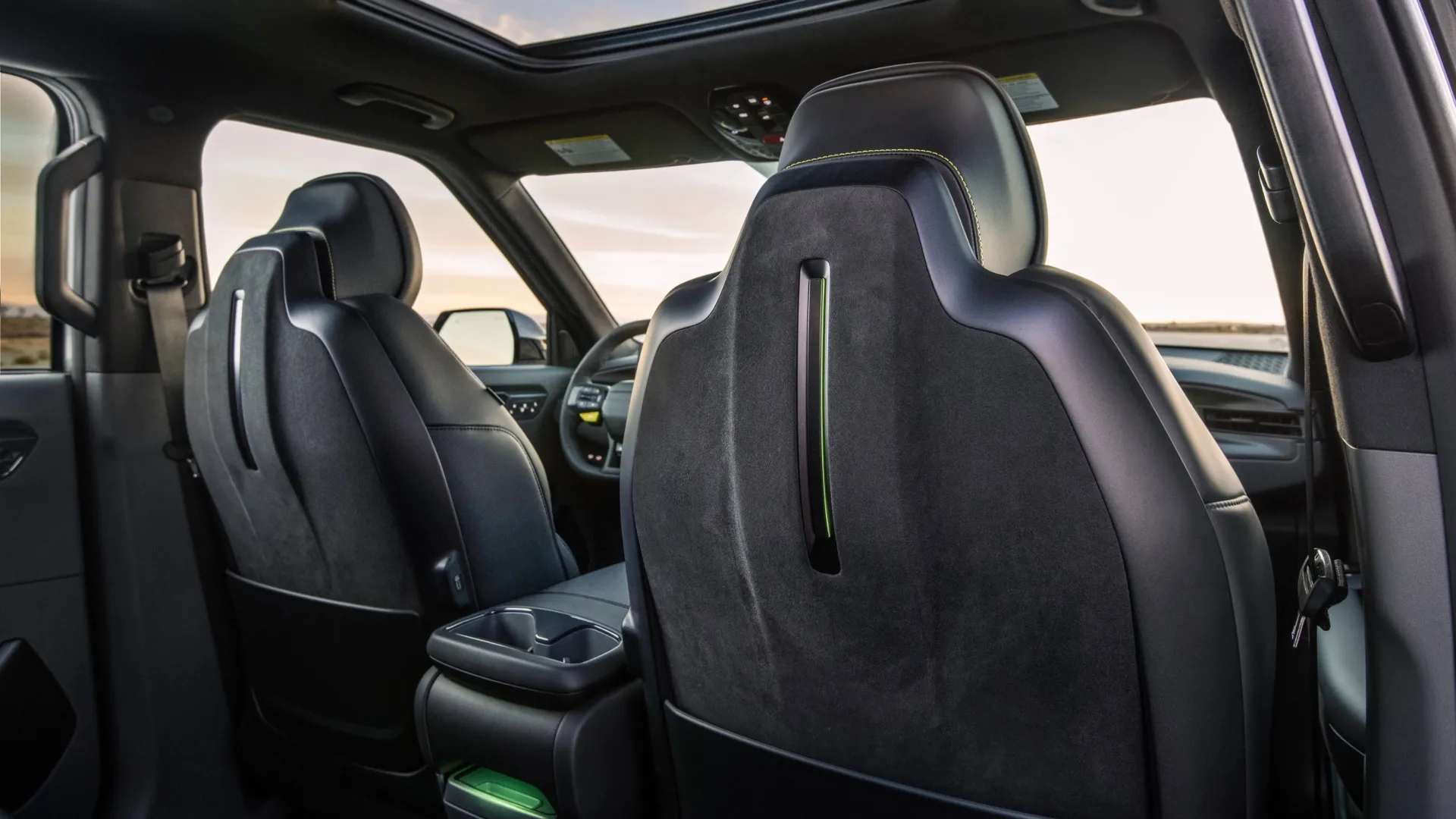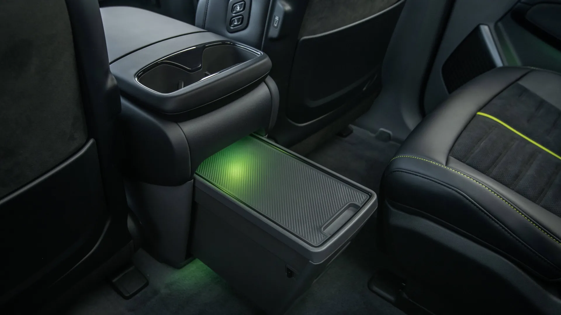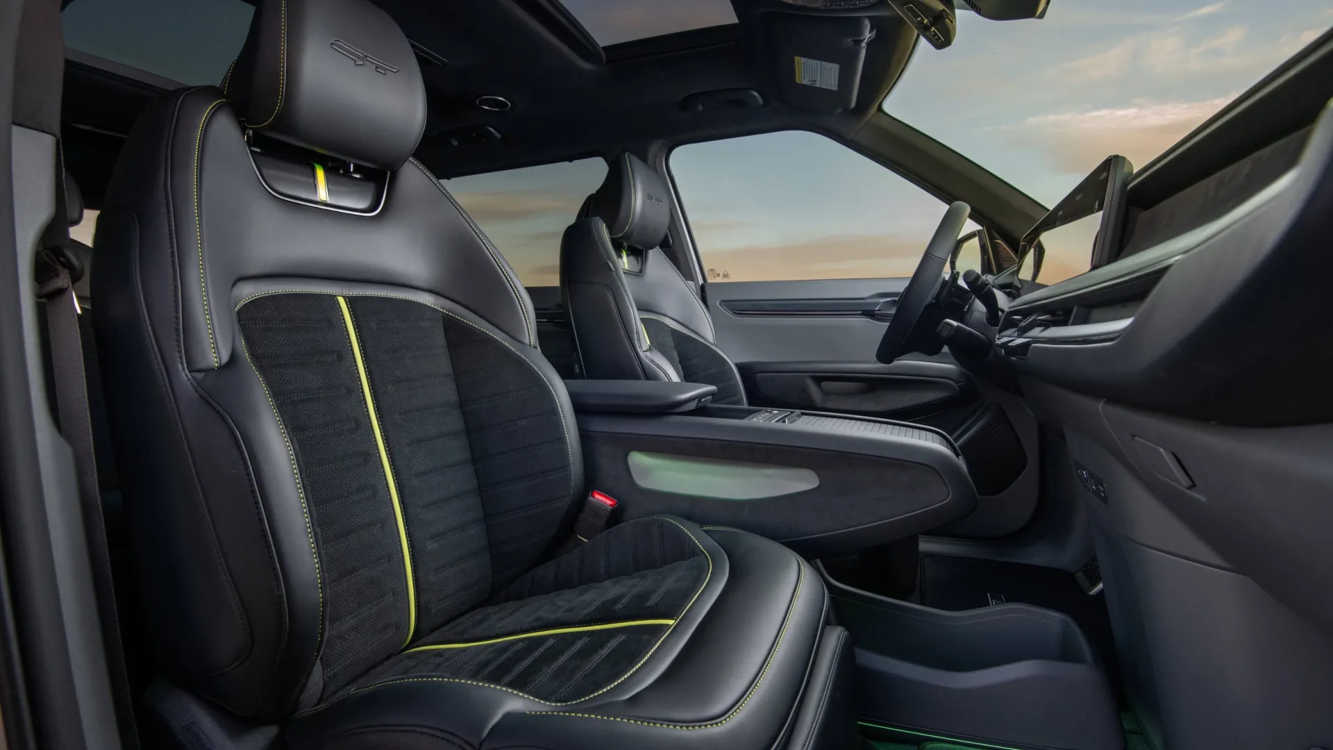QUEI DETTAGLI CHE FANNO LA DIFFERENZA. Quanto alla personalizzazione estetica della Kia EV9 GT, gli inserti in verde acido (verde Neon il nome ufficiale) al centro dei sedili a semiguscio con illuminazione ambientale integrata, coordinati con le pinze dei freni (dietro cui occhieggiano i dischi freno autoventilanti da 360 mm davanti e da 340 mm dietro, all’interno delle ruote in lega da 9Jx21” con pneumatici 285/45 R21) e il tasto al volante per inserire o disinserire la modalità di guida GT, sono i principali elementi specifici della EV9 più potente, che mette sul campo raffinati rivestimenti scamosciati in Alcantara ed ecopelle, con il logo GT in rilievo sugli schienali. Plancia e quadro strumenti digitale restano immutati rispetto alla GT-Line, fatte salve le indicazioni in color verde Neon che prendono vita quando si attiva la modalità GT. Davanti al posto guida spicca, come sulle altre Kia top-di-gamma, il triplo schermo curvo che ospita, tra strumentazione e infotainment, un piccolo monitor per gestire la climatizzazione senza passare da altri menu nascosti nell’infotainment. Il colore metallizzato dell’esemplare provato è sobrio, perfetto per dissimulare le prestazioni “monstre” della 7 posti coeana a ruote alte.