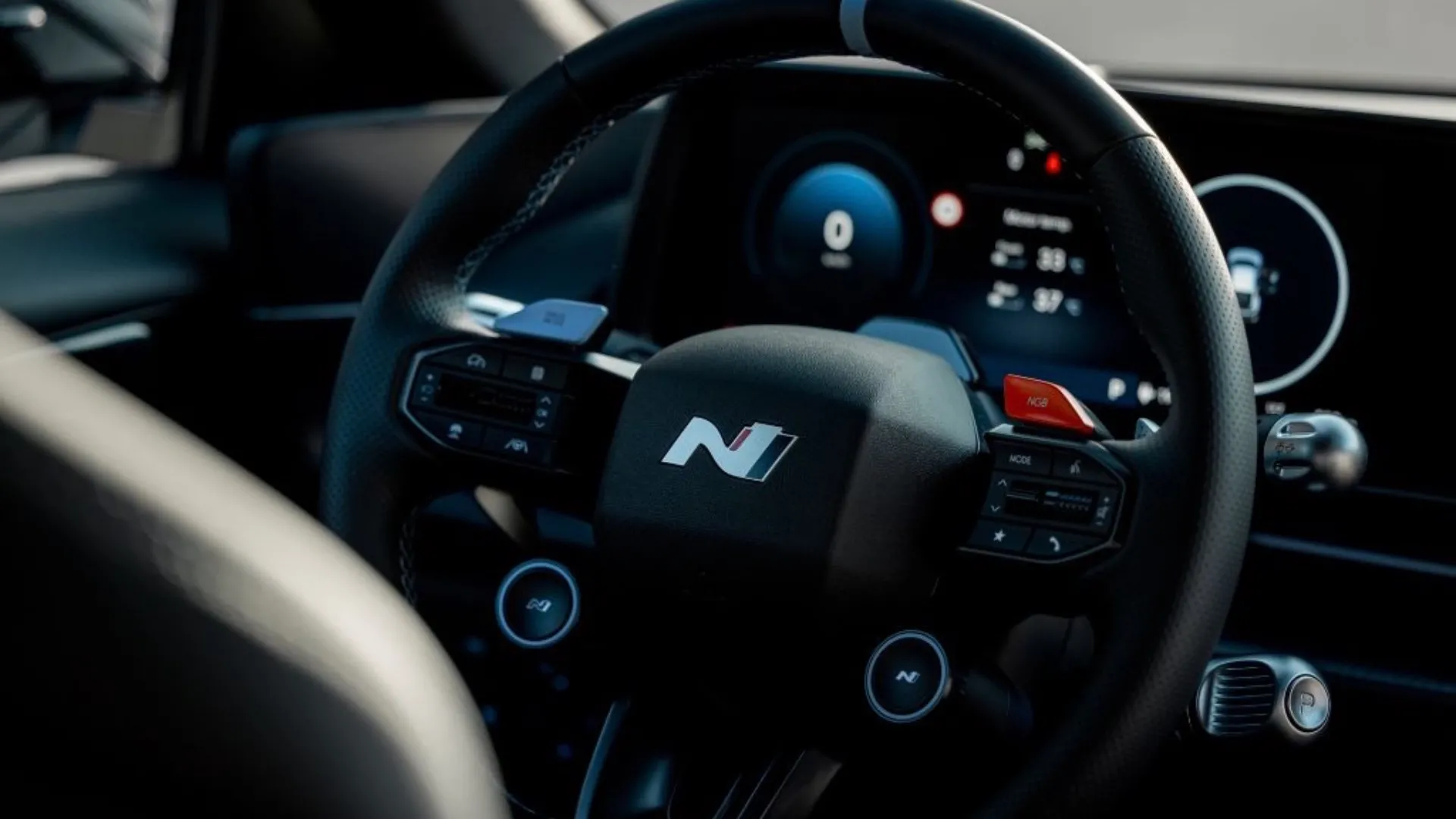 PULSANTI A PROFUSIONE. Dopo aver spinto diversi pulsanti per farle esprimere le massime prestazioni, attivo anche il suono artificiale e la funzione che simula le cambiate, con tanto di scoppiettii in rilascio e intervento del limitatore se ci si dimentica di tirare la paletta di destra. I Pirelli P Zero non sono semi-slick, ma con 15 °C di temperatura esterna dovrebbero resistere per qualche giro a tavoletta e comunque sono progettati specificamente per la Ioniq 6 N. Esco dalla corsia box, distendo il piede destro e la Hyundai balza in avanti con rabbia, mettendo a terra 650 CV.