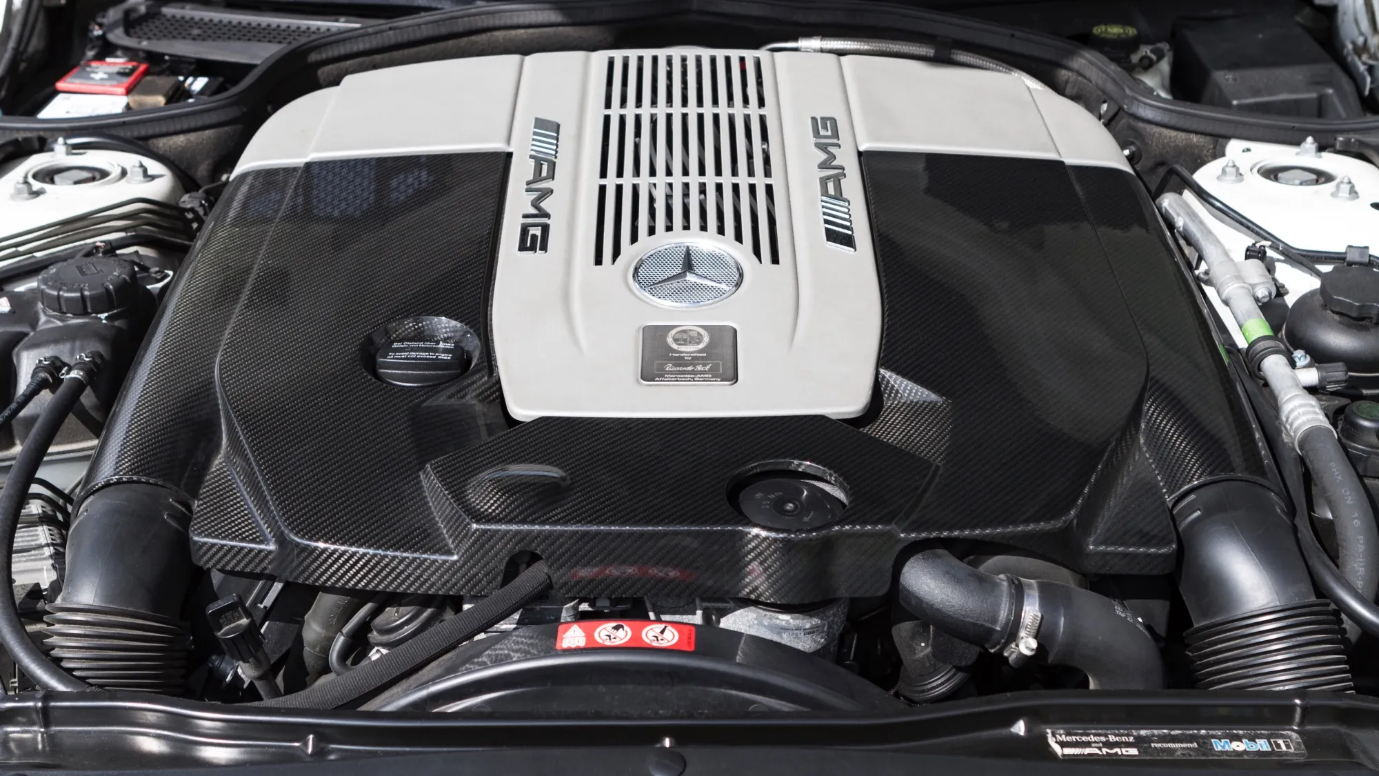 Non sono Sherlock Holmes, ma il signor Riccardo Beck potrebbe essere un italo-tedesco trasferitosi nei pressi di Affalterbach per seguire la propria passione per i motori. Lo ipotizzo perché sto fissando il monumentale V12 biturbo della Mercedes SL 65 AMG e centralmente, proprio sotto la stella a tre punte, c’è una targhetta con inciso questo preciso nome. Come da filosofia AMG ‘one man one engine’ ogni propulsore testimonia la persona che l’ha assemblato, e il signor Beck ha di certo messo insieme un gran bel motore. Non che oggigiorno appaia gracile e sottopotenziato, ma all’epoca il 6 litri V12 biturbo della roadster teutonica doveva sembrare qualcosa di indomabile, esagerato. 612 cavalli (esattamente come la Porsche Carrera GT, aspirata ok, però rende l’idea) e 1250 Nm di coppia limitati a 1.000 per evitare che il cambio esplodesse; nel 2004 era la due posti più potente dell’intero pianeta, tanto per dire. Il grosso dodici cilindri è talmente ingombrante che un giapponese ricaverebbe un intero monolocale da quello spazio, completo di letto matrimoniale, cucina e asciugatrice… solo che un monolocale non avrà mai le prestazioni della SL65 e difficilmente sarà costruito altrettanto bene.