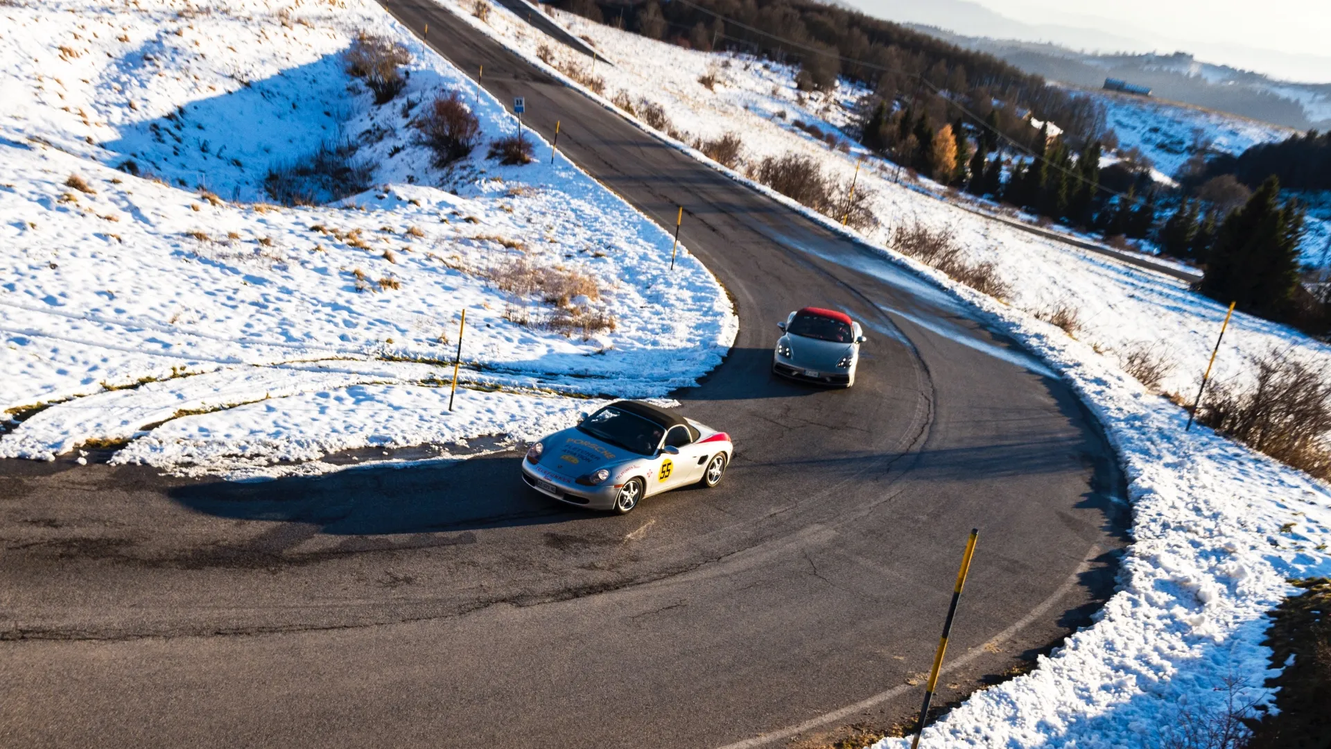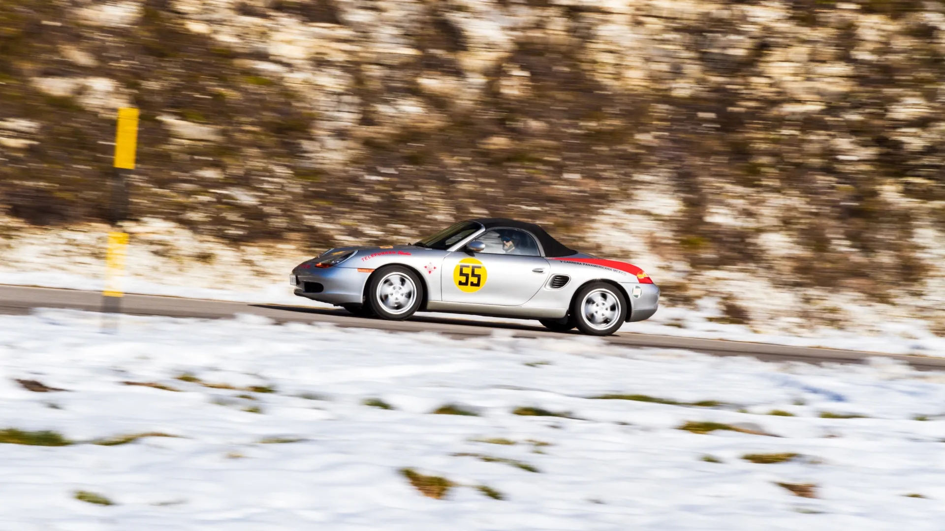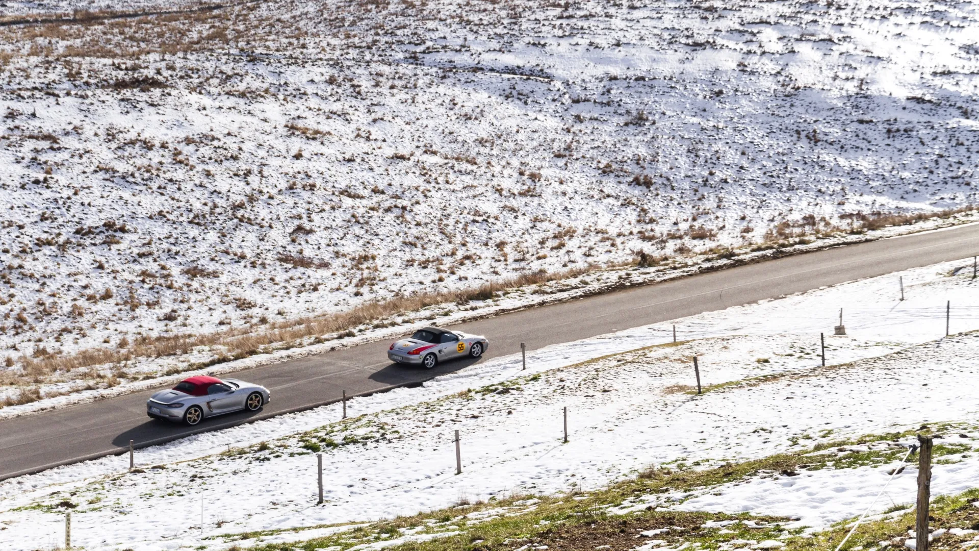 DUE PASSI, UNA SCELTA GIUSTA. Due flat six e due telai progettati per amalgamarsi con le curve meritavano una location adeguata, così abbiamo raddoppiato direttamente salendo sia a Passo Fittanze che al Passo del Branchetto. Il primo è un valico relativamente stretto e tortuoso, con un panorama arioso e sconfinato giunti sulla sommità, il secondo è immerso nella nostra gettonata Lessinia in provincia di Verona, un altopiano dal percorso molto più veloce e ampio perfetto per slegare queste due teutoniche. L’aver coinvolto la più anzianotta delle Boxster mi generava un po’ di timore, come iscrivere un cucciolo di Panda ad una gara di levrieri, invece già i primi chilometri mi tranquillizzano. Tutto sulla 986 è fluido, equilibrato, e rispetto alla 986 S – che monta un 3.2 da 252 cavalli – non c’è questa abissale differenza in termini di spinta.