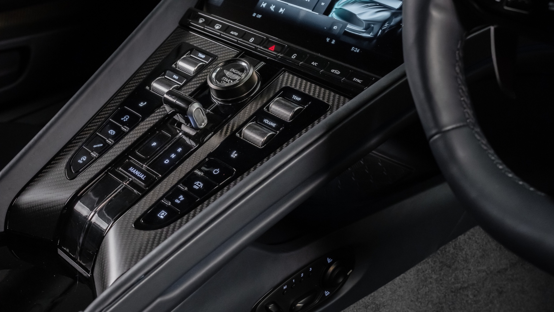 LO STAVAMO ASPETTANDO. Ma andiamo con ordine e partiamo proprio dalle novità più grandi, quelle degli interni, dove ai rivestimenti di alto livello e alle innumerevoli possibilità di personalizzazione per colori e materiali, ora finalmente troviamo tutta la tecnologia che ci si aspetta da una GT di lusso di questi tempi. L’Aston Martin DB12 non utilizza più un sistema multimediale di derivazione Mercedes (ma di precedente generazione), ma un moderno infotainment interamente sviluppato dagli ingegneri di Gaydon. Si compone di due schermi, entrambi da 10 pollici ad alta definizione uno per la multimedialità, l’altro per il cruscotto, con tecnologia Oled per una fedele riproduzione dei contrasti e del nero e, sopratutto, molto reattivi già da questa primo incontro con un esemplare di preproduzione. Le logiche di funzionamento di entrambe i pannelli paiono abbastanza intuitive con pulsanti virtuali scorciatoia per il display centrale sempre visibili e menù chiari e facilmente navigabili per il cruscotto attraverso i comandi sulla razza destra del volante. Rimangono poi diversi tasti fisici, quasi tutti raccolti sulla consolle centrale, ma ben disposti: questi controllano alcune delle funzioni più importanti della vettura come la climatizzazione, il volume della radio e le impostazioni di telaio, Esp e il sistema di mantenimento in corsia. Anche il selettore delle modalità di guida si trova in questa zona: è un rotore posizionato attorno al pulsante di accensione del motore. Arriva poi un nuovo selettore della marcia avanti e indietro che va a sostituire i precedenti tasti di grandi dimensioni (non particolarmente comodi) posizionati sulla plancia. Con queste novità, l’abitacolo della Aston Martin DB12 compie un deciso passo avanti rispetto a quanto visto in passato che, unito alla dotazione completa di assistenti alla guida di livello 2, pone l’inglese al pari della migliore concorrenza.