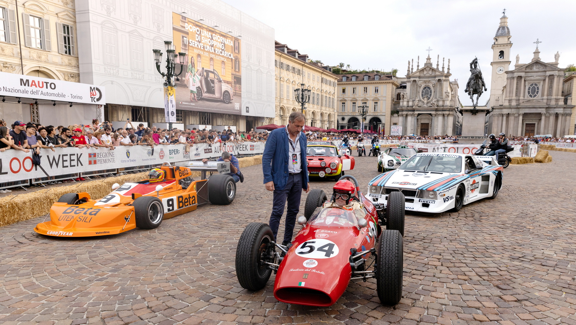 UNO SHOW DA FAVOLA. Noi di Veloce non potevamo certo mancare all’appuntamento e abbiamo staccato un pass per gustarci lo spettacolo della AutoLook Week 2022 in prima fila. A godersi lo show, ieri sera, due ali di folla impazzita, con grandi e piccini stregati dal rombo di motori leggendari. Lungo il tratto di via Roma che collega le centralissime piazze San Carlo e Castello si sono sgranchiti i semiassi “vecchiette” che, nell’immaginario delle platee che hanno avuto il privilegio di vederle correre nel pieno della loro carriera, rimangono sospese tra storia e leggenda. Macchine da poster (e non è un modo di dire…) che hanno toccato le corde della nostalgia per papà e nonni, facendo letteralmente spalancare la bocca ai più piccoli, quasi increduli al cospetto di macchine così colorate nelle loro accesissime livree e davvero uniche nel raggiungere, coi loro potenti motori, un numero di decibel tale da far tremare i vetri di case e negozi.