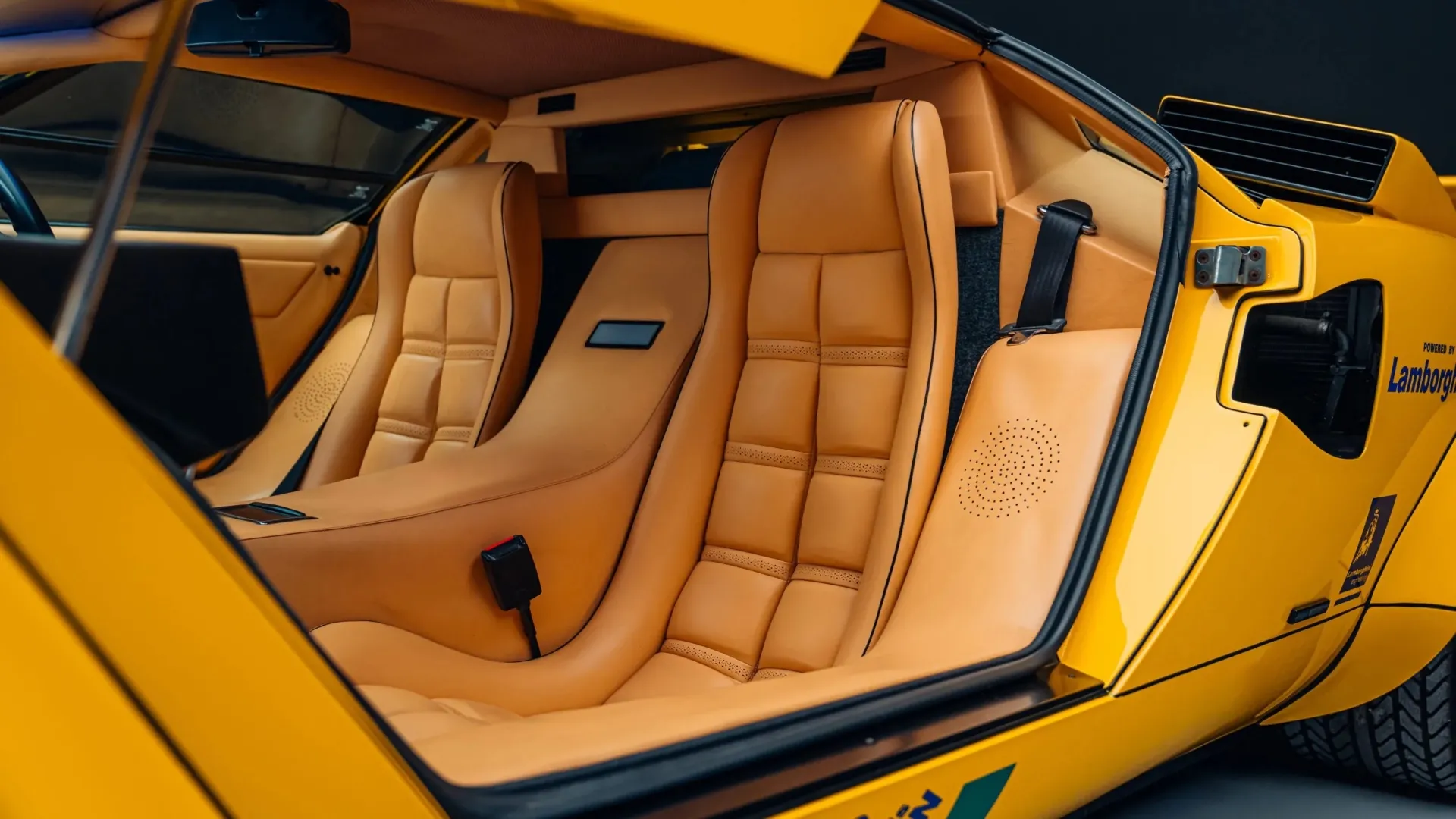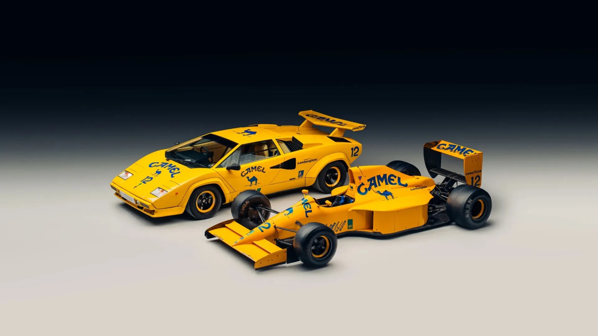 LIVREA PER FUMATORI. Questo solare duo infatti è in vendita presso gli specialisti inglesi, con sede nel Kent, esperti in vetture esotiche e costose, e queste due lo sono eccome. La prima diva della coppia è una Lamborghini Countach 5000 QV del 1985, unica con guida a destra ad essere nata già di fabbrica gialla. Monta il famigerato spoiler optional, ha eleganti interni biscotto, linee ancora oggi mozzafiato e un colossale V12 da 455 cavalli artefice di prestazioni notevoli e di un sound micidiale. Come avrete notato la giallissima carrozzeria si distingue per una livrea Camel blu che replica quella della monoposto Lotus Type 102… e c’è un preciso motivo.