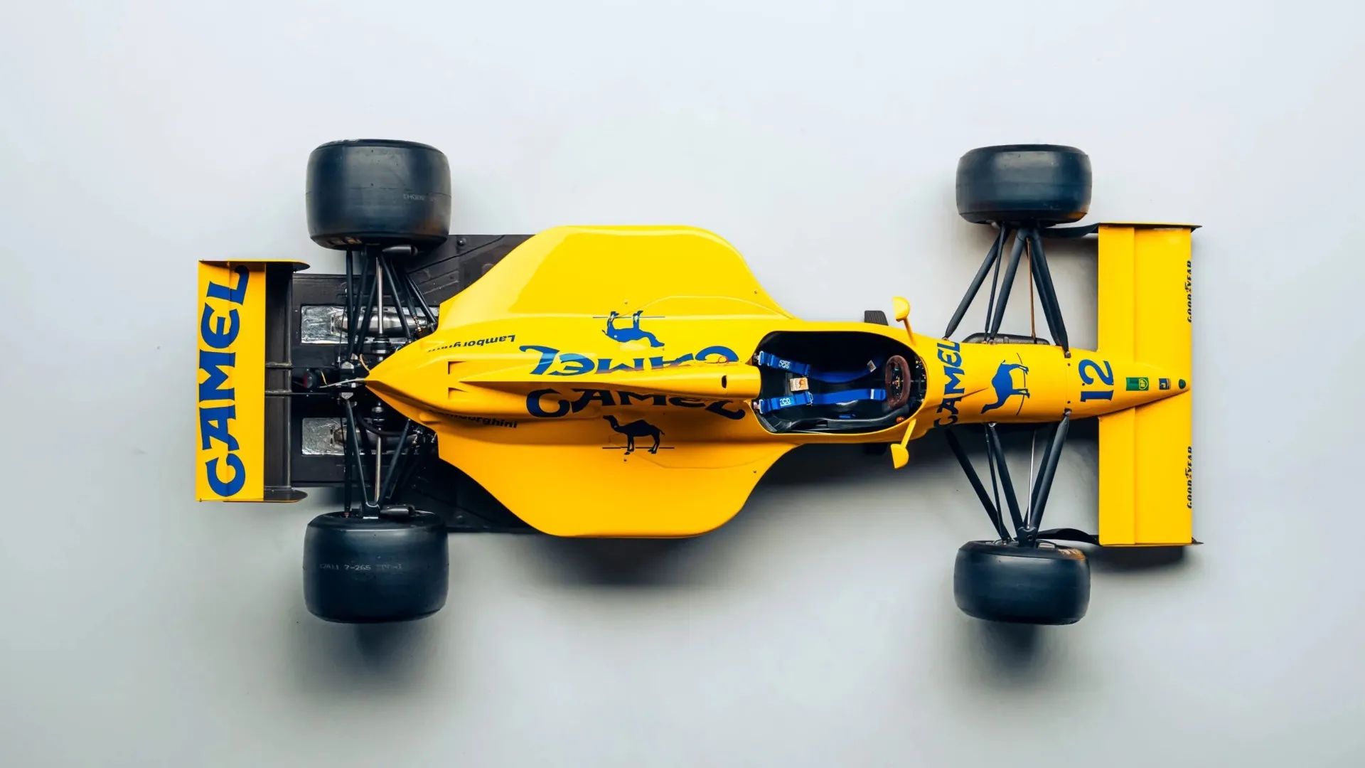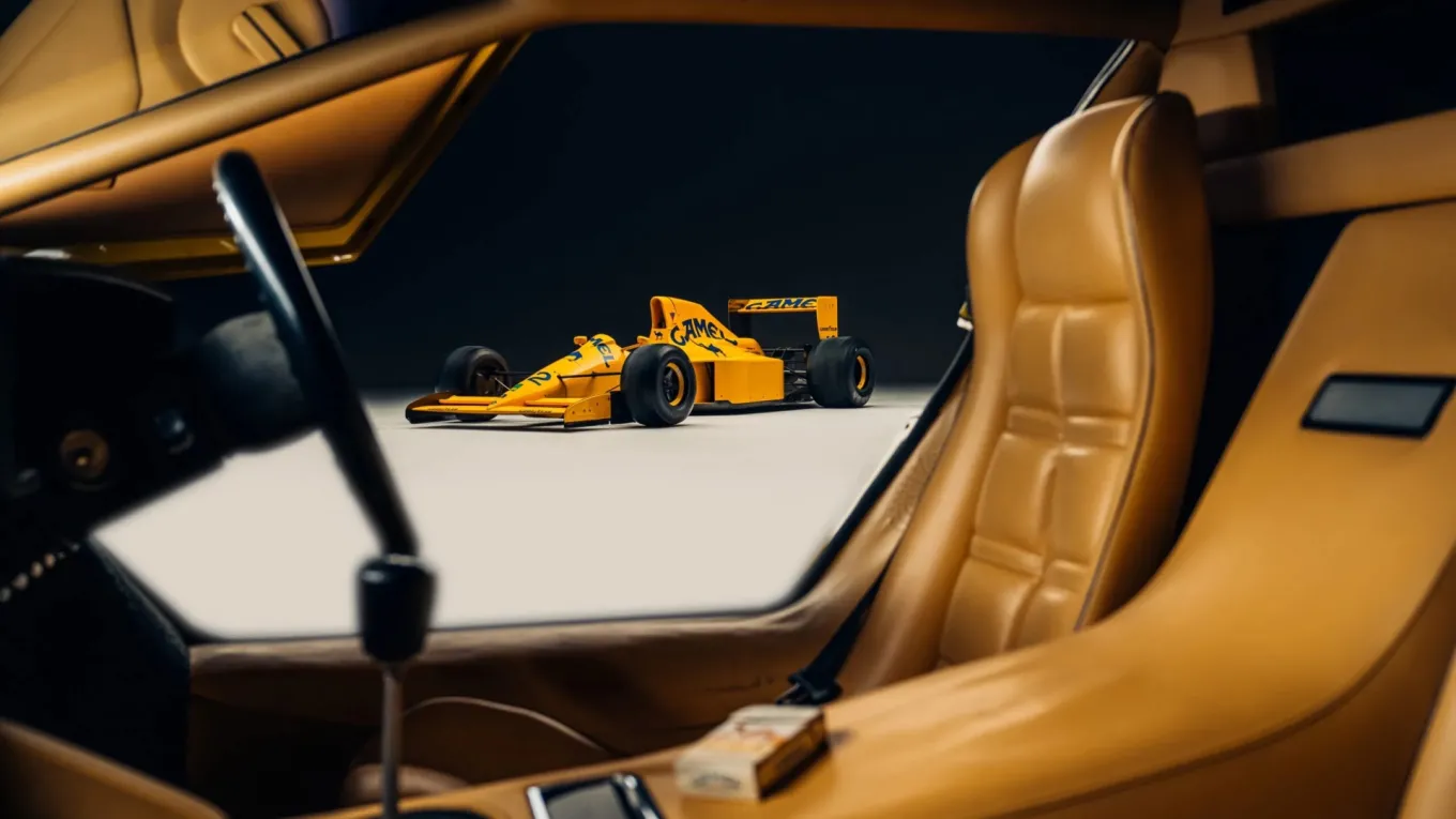 TELAIO LOTUS, CUORE LAMBO. La seconda metà della collezione è composta proprio da una Type 102, celebre vettura da Formula 1 marchiata Lotus ma mossa da un 3.5 V12 progettato in Lamborghini, aspirato e capace di 640 cavalli. Questo specifico esemplare è il telaio numero 2, guidato da piloti come Derek Warwick, Martin Donnelly e Johnny Herbert. Durante la stagione 1990 non arriverà mai alla gloria (il miglior risultato dei suoi 6 GP disputati fu un ottavo posto a Imola) ma siamo sicuri che a tutti gli spettatori sugli spalti importasse ben poco, stregati dal sound di quella meraviglia montata in posizione centrale.