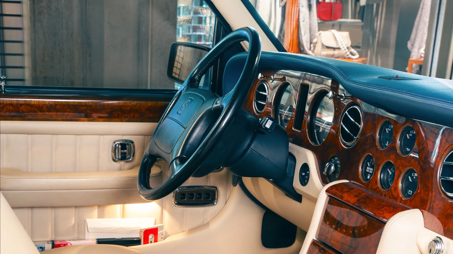 UNA STORIA TUTTA TRICOLORE. Secondo i registri di fabbrica Bentley (consultabili in archivio), il colore esterno blu reale intenso era accentuato da una sottile linea decorativa color pergamena. Gli interni combinavano invece pelle color pergamena con finiture in radica di noce e tappeti in pietra di Portland. La Brooklands fu consegnata nuova in Italia tramite la famosa concessionaria Sa.Mo.Car di Roma. Si dice che, in linea con le iniziali del suo primo proprietario di alto profilo, la Bentley fu immatricolata con la targa italiana AG138SE. In realtà AG erano le lettere in uso in quel periodo, dunque pura casualità, visto che in Italia non è possibile né ordinare targhe personalizzate né scegliere la successione preferita di lettere e numeri. È invece significativo che la Bentley abbia mantenuto questa immatricolazione per tutta la sua storia di proprietà italiana. Armani ha rivenduto la Brooklands alla Sa.Mo.Car alla fine di settembre 1996, prima che fosse acquistata da un nuovo proprietario nella periferia della capitale.