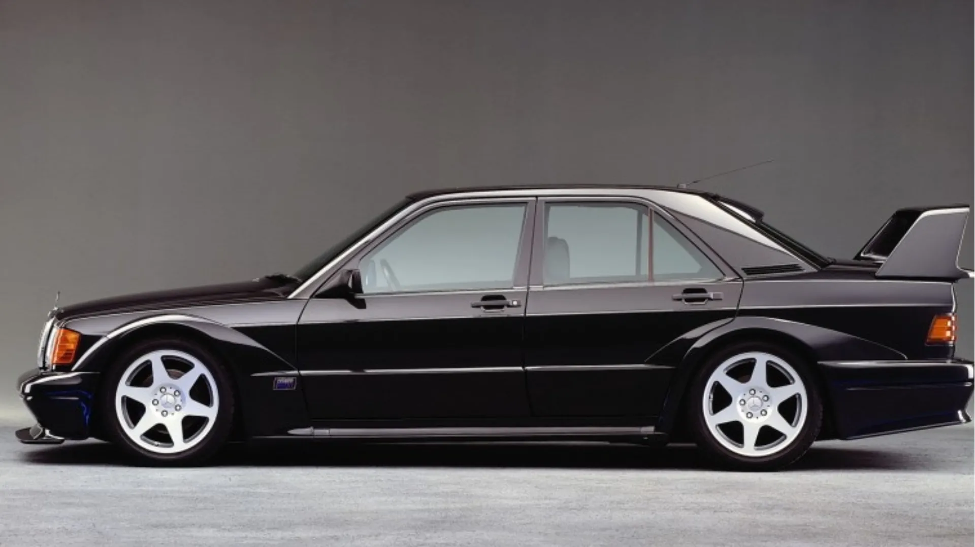 IL DTM NEL SANGUE. Parliamo della Mercedes-Benz 190 E 2.5-16 Evolution II, cui nome è lungo quasi quanto la propria striscia di successi. La Evo II nasce come ‘homologation special’, prodotta in soli 502 esemplari al fine di omologare la versione da corsa nel campionato DTM, estremamente competitivo e vinto dalla muscolosa berlina nel 1992. Sarebbero bastati 500 esemplari, ma la proverbiale razionalità tedesca abbondò: sia mai che gli ispettori contassero male, meglio avere margine. Prima ancora della meccanica la 2.5 stupiva per l’estetica da picchiatore, con stupendi passaruota gonfi, un’ala posteriore arrogantissima, corpo vettura schiacciato a terra e splitter prominente; non la scambiavate certo per la versione tranquilla.
