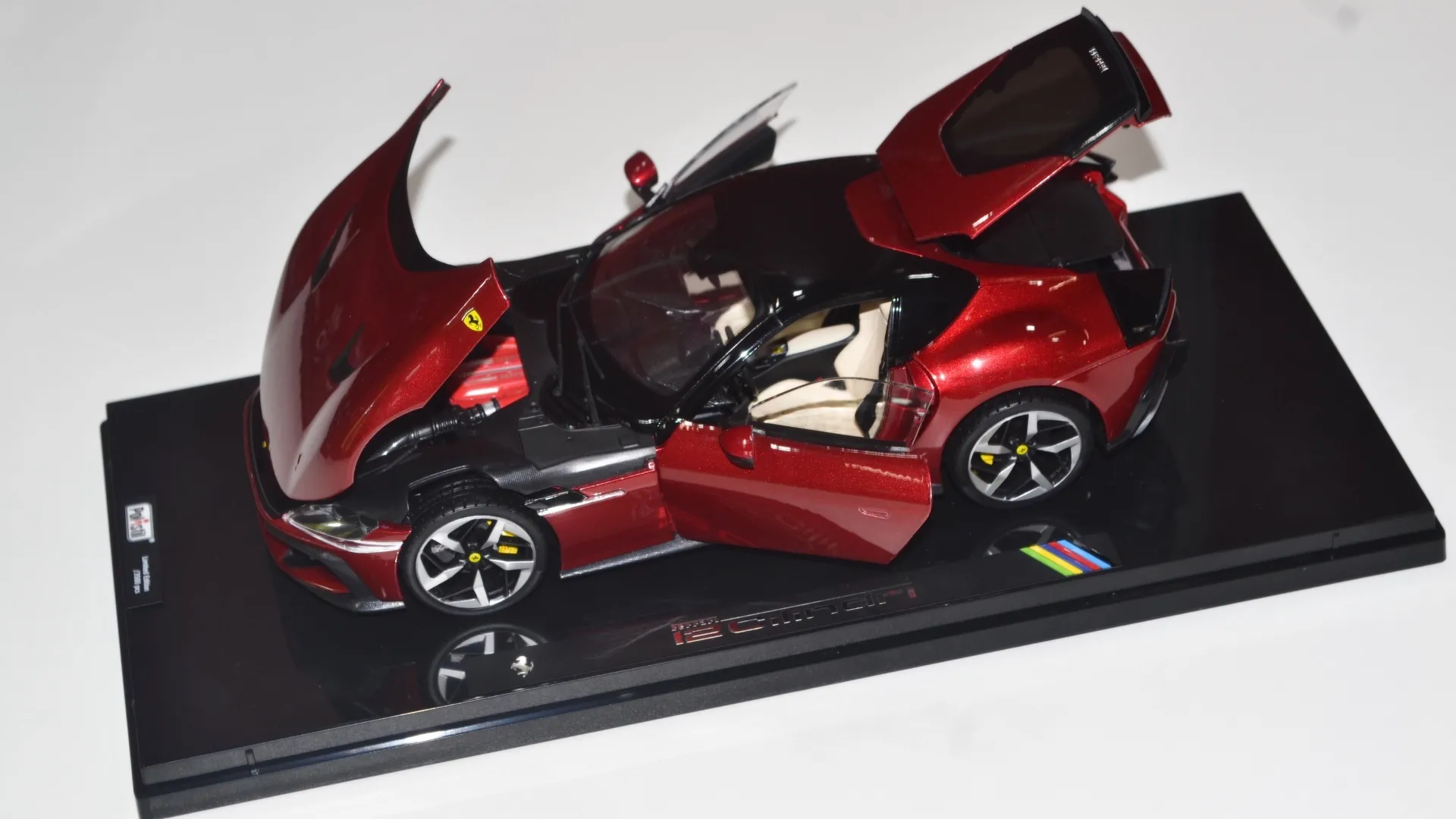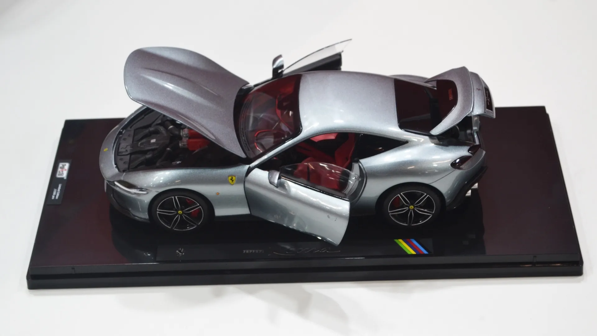 TRE NUOVE FERRARI IN 1/18 SUBITO E ALTRE DUE IN ARRIVO. Proprio da questo rapporto “preferenziale” con la May Cheng Group, la multinazionale proprietaria dei succitati marchi Burago e Maisto, è nata l’idea di riportare agli antichi splendori il marchio Polistil che il colosso orientale aveva già acquisito, riservandogli però un ruolo marginale come brand low-cost per giocattoli economici. Appassionato collezionista Polistil, Pretaroli si accordato con i vertici cinesi per salire al timone della rinascita del marchio milanese, destinandolo alla produzione di modelli in scala 1/18 delle Ferrari di serie di ultima generazione. Al Salone di Norimberga di fine gennaio il debutto in società, in uno stand tra i più ammirati dagli addetti ai lavori, dove spiccavano soprattutto i tre modelli del Cavallino Rampante più iconici del momento: la Purosangue, disponibile in tre colori (Rosso Magma, Rosso Corsa e Blu Corsa, con interni contrastanti), la Roma coupé (in Grigio Titanio, Rosso Corsa e Rosso Magma) e la 12Cilindri coupé (in Rosso Imola, Rosso Corsa e Giallo Modena). Cambiano anche, a seconda dal colore della carrozzeria, le tinte delle pinze dei freni, gialle o rosse.
