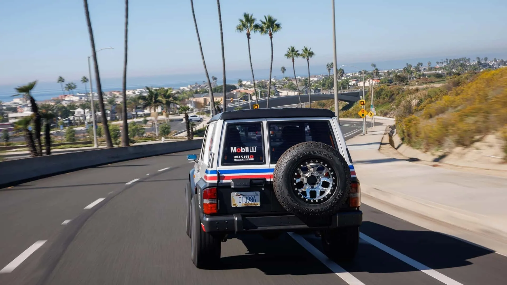 RUDE A DIR POCO. Le squadrate forme della fuoristrada giapponese si sono allontanate dal terreno grazie ad ammortizzatori forniti dal reparto corse Nismo e appositamente progettati per la Patrol. Le gigantesche gomme Yokohama con spalla rialzata avvolgono cerchi Nismo di 17’’. Tutta questa esuberanza “off-road” è accentuata da una vivida livrea Mobil 1/Forsberg Racing bianca, rossa e blu, faretti aggiuntivi e protezioni sottoscocca, come se la Patrol volesse dirvi: “Sbattetemi pure su qualunque percorso vogliate, tanto me lo bevo come fosse un bicchier d’acqua”.