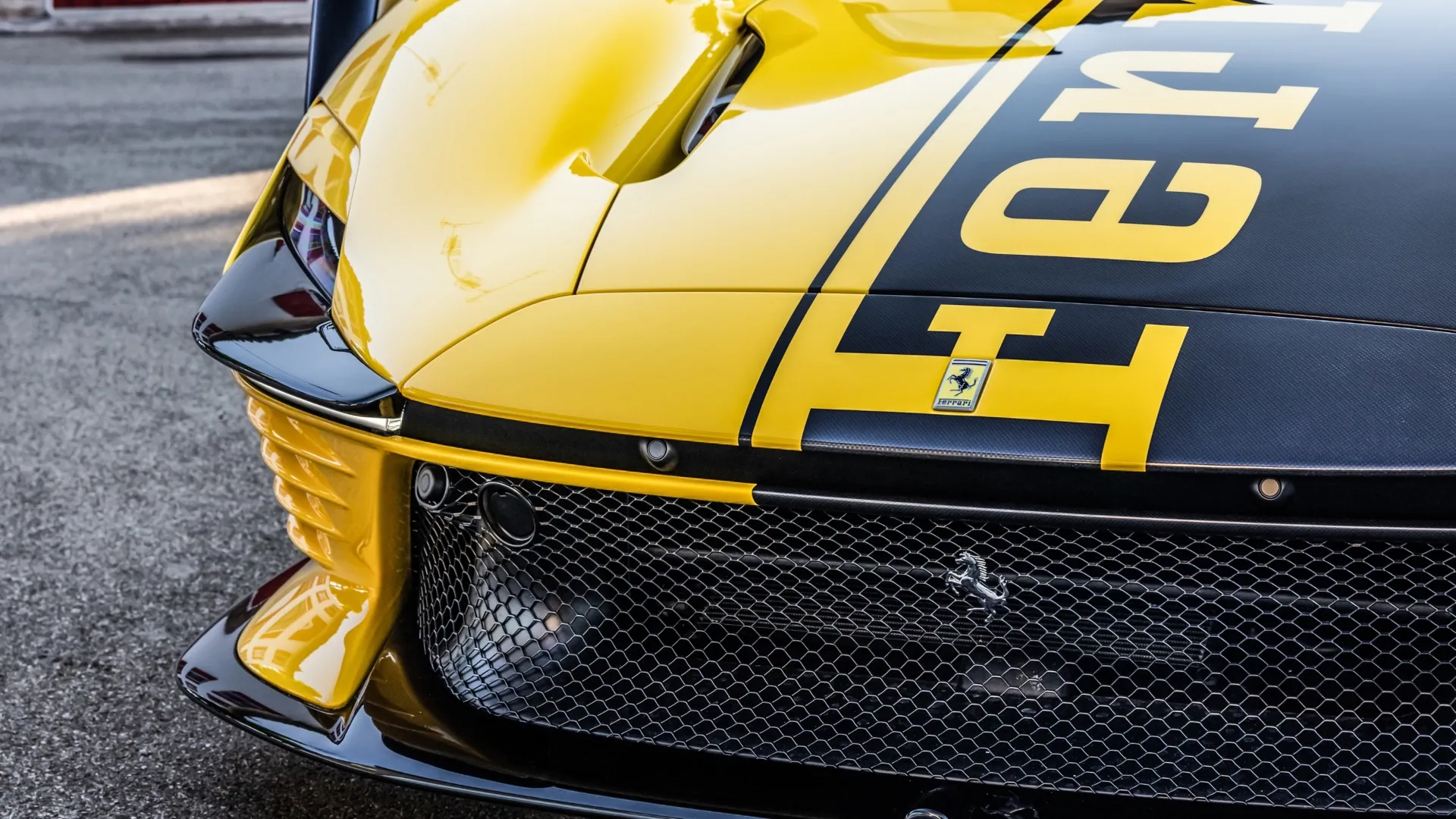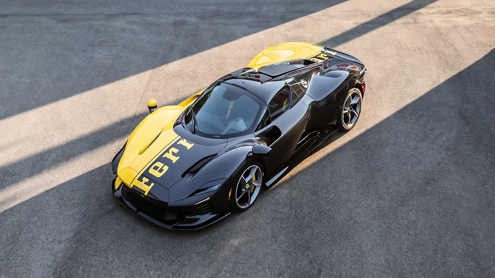 Non era la prima volta che la Casa di Maranello aggiungeva un “+1” a una produzione già sold-out per sostenere una causa solidale. Era successo anche con LaFerrari nel 2016, quando un esemplare supplementare venne venduto per aiutare le popolazioni dell’Italia centrale colpite dal terremoto. La Daytona SP3 “599+1” riprende quella tradizione, ma lo fa con una forza simbolica ancora maggiore. A renderla immediatamente iconica è stata la livrea: una combinazione inedita di fibra di carbonio a vista e Giallo Modena, attraversata dalla scritta Ferrari a tutta lunghezza. Un dettaglio mai visto prima su una Ferrari stradale, tanto potente dal punto di vista visivo da trasformare l’auto in un manifesto su ruote, già destinato a entrare nell’immaginario collettivo – non a caso riprodotto immediatamente anche in scala.