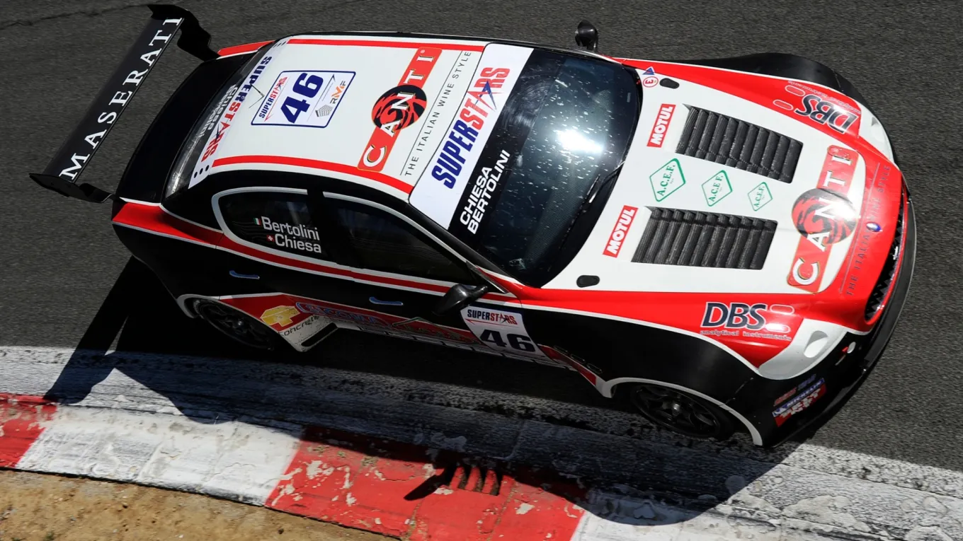 LA SFIDA IMPOSSIBILE. Tra le BMW M3 e le Mercedes C 63 AMG, nel 2009 arrivò la Maserati Quattroporte dell’epoca, la M139 disegnata da Pininfarina: pesante, imponente e progettata per offrire il massimo comfort, sembrava una candidata fuori luogo per un campionato turismo. Tuttavia, il V8 4.2 di origine Ferrari capace di urlare sotto il lunghissimo cofano prometteva altro. L’intuizione di portarla in pista non arrivò direttamente dalla casa madre, ma dalla visione della scuderia svizzera Swiss Team di Guido Bonfiglio. Con il supporto tecnico della casa di Modena, la Quattroporte venne spogliata di ogni lusso superfluo, dei legni pregiati e delle pelli pieno fiore, per essere equipaggiata con roll-bar, assetto e aerodinamica da gara, pur nel rispetto delle linee originali: un lavoro di ingegneria estrema, capace di rendere agile un corpo vettura così massiccio, ma il risultato fu una delle auto da corsa più carismatiche di sempre.